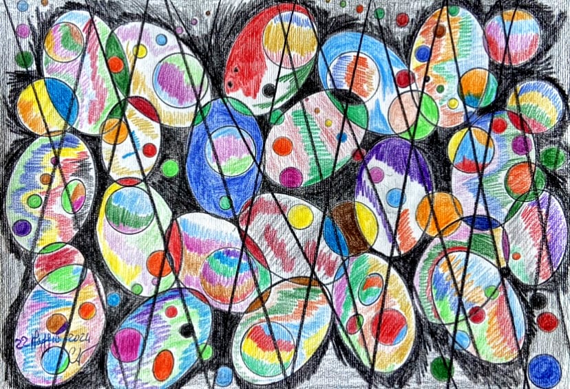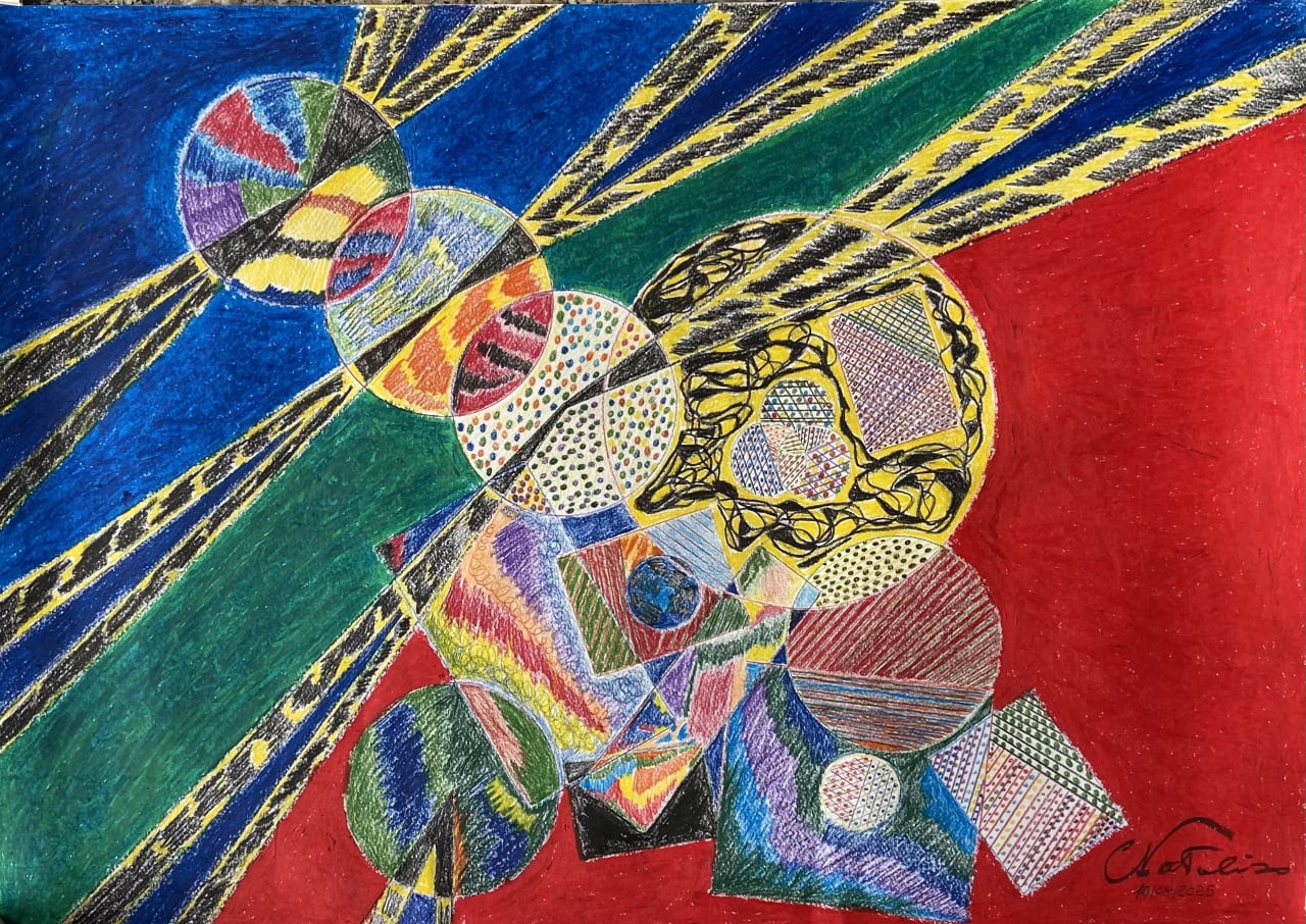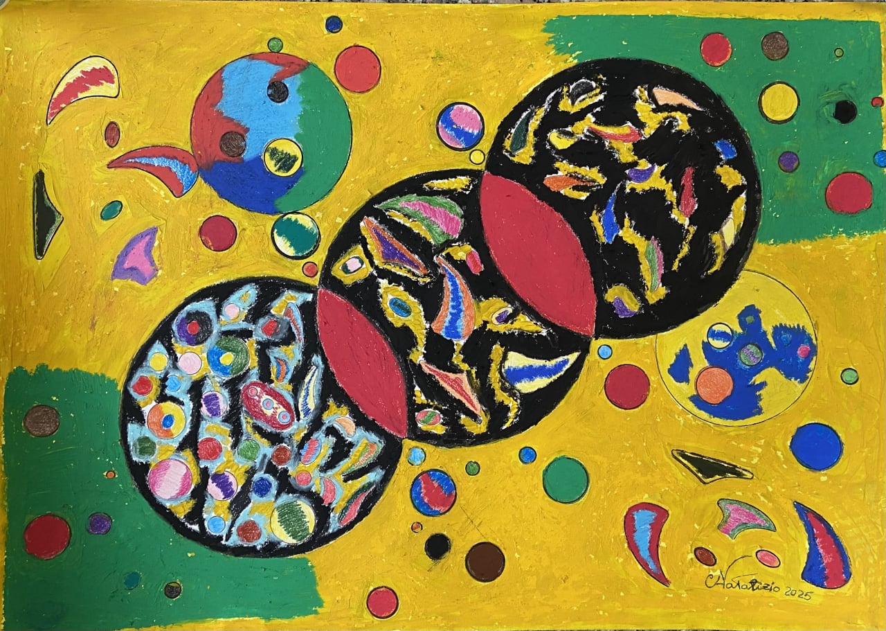 In questa sezione potete trovare le mie opere astratte, un'esplosione dinamica di colore vibrante e composizioni geometriche complesse, dove sfere, cerchi e forme si intersecano in uno spazio energetico. La caratteristica distintiva risiede nella ricerca minuziosa del pattern e della trama all'interno di ogni elemento, creando un affascinante dialogo tra macro e micro-strutture decorative. Una pittura che celebra il movimento, la luminosità e l'intreccio degli elementi, invitando a una contemplazione visiva ricca di dettagli e ritmo.